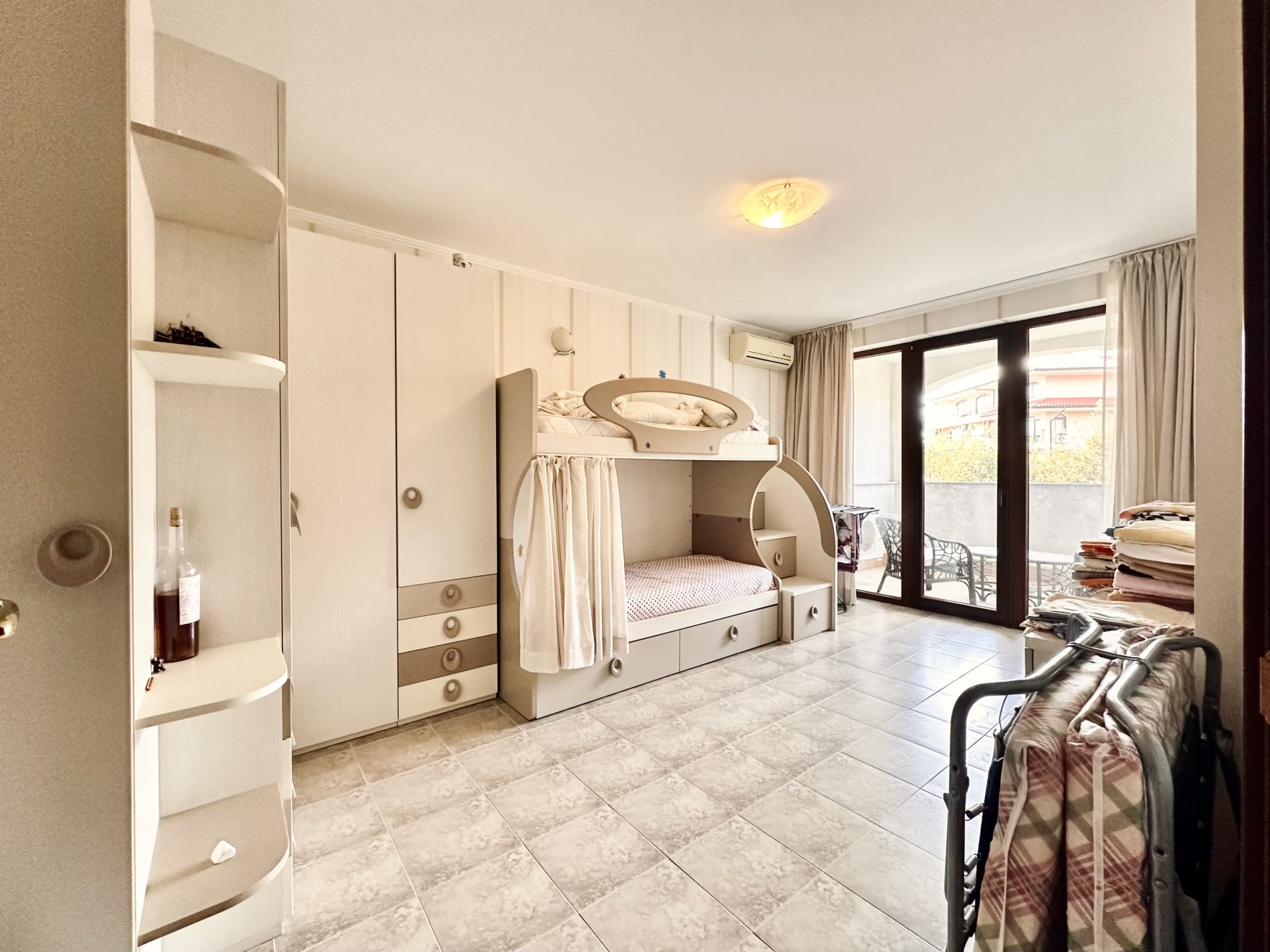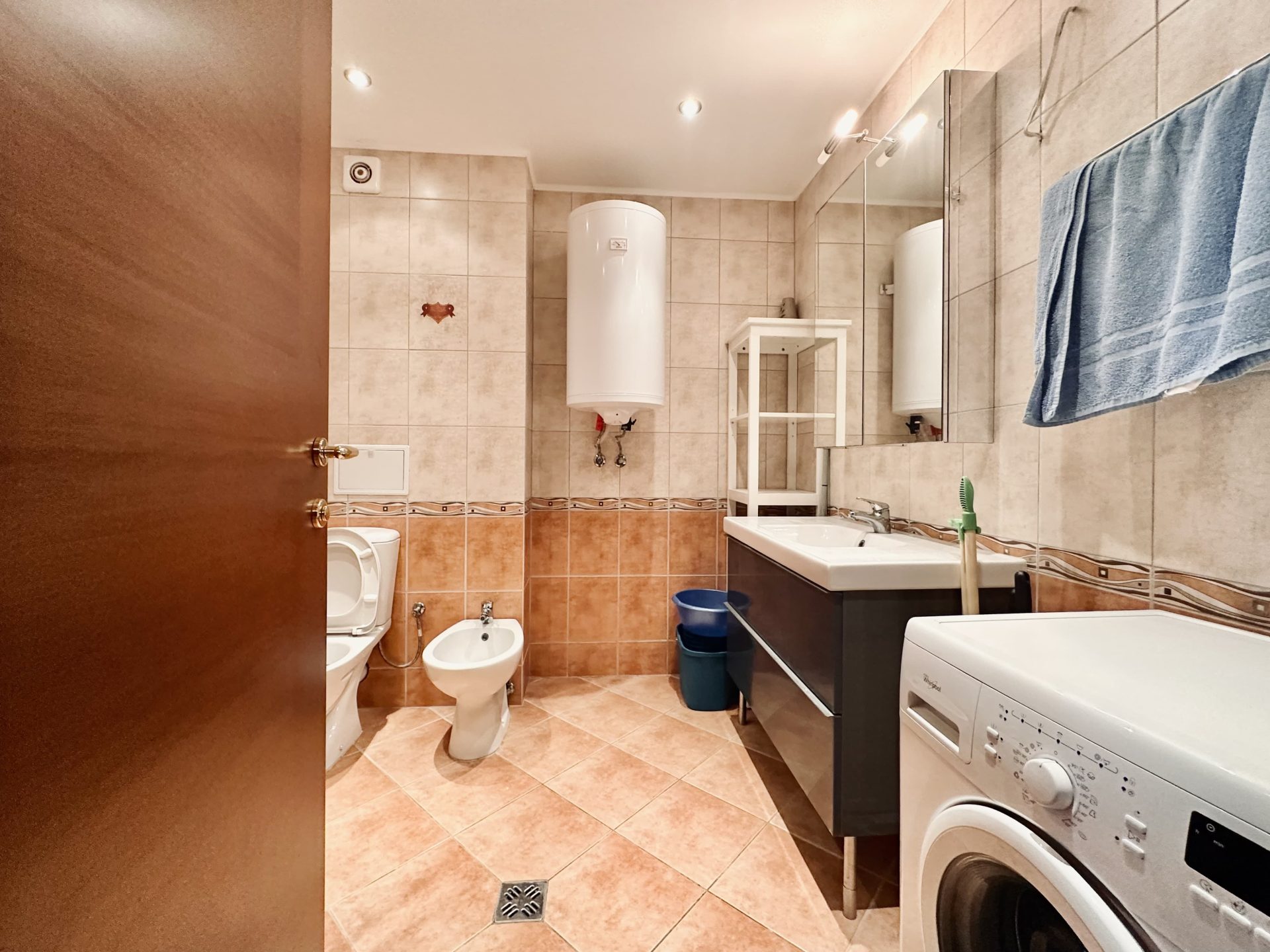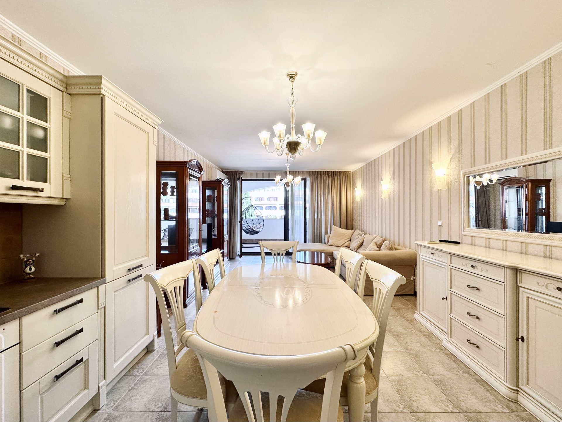 Прекрасный просторный апартамент с 2 спальнями в комплексе Каса Реал, Святой Влас. Апартамент состоит из просторного коридора, гостиной с полностью оборудованной кухней, из гостиной есть выход на первую террасу апартамента с видом на внутреннюю территорию комплекса, а также море. По коридору есть одна ванная комната с установленной душ кабиной, гардеробная комната. Две спальни, одна из которых со своей ванной комнатой. Из обеих спален есть выход на вторую террасу. Общая площадь апартамента составляет 149,25 кв.м.
